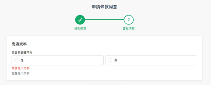 2. 申請類別:僅限「特店」(申請類別需為 大特店),但使用前台金流方案之商家不得申請。
