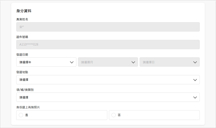 (3) 身分證發證資料:需要填寫 (個人身分)