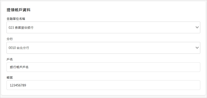 (4) 提領帳戶資料:需要填寫,後續可再修改