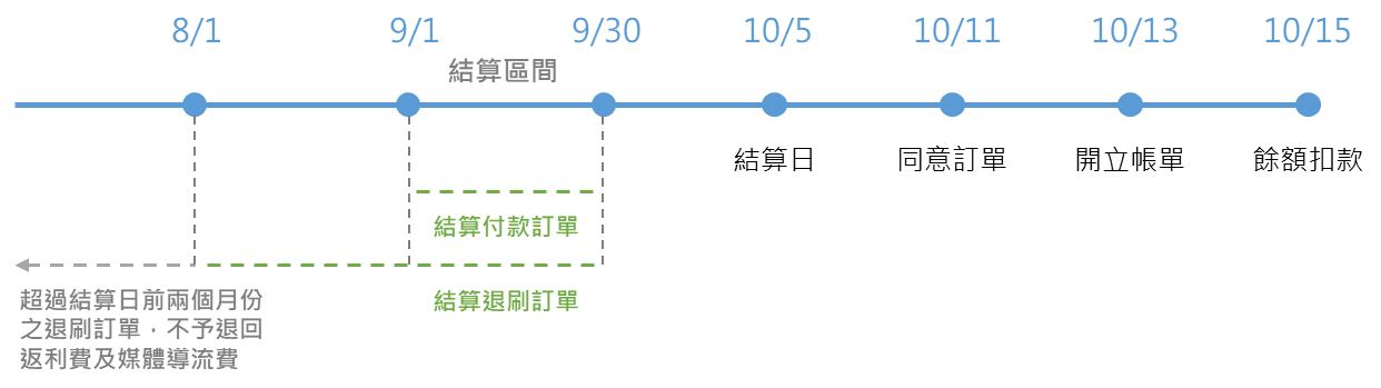 2. 訂單付款完成日超過結算日前兩個月份(8/1 之前)