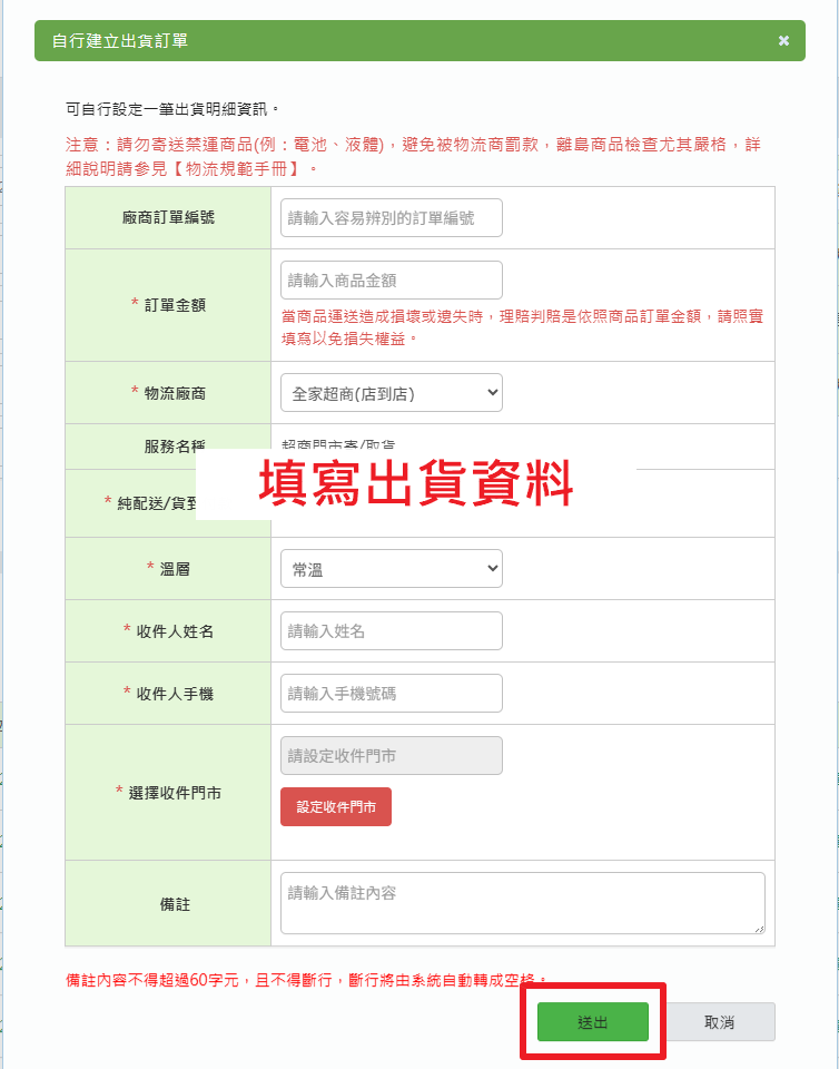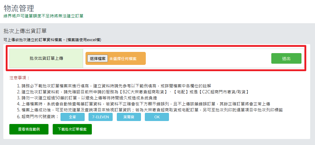 如果您是使用電商平台、購物車模組或技術API串接的賣家,平台都有設定好固定的出貨操作流程,請您依照您的網站畫面進行操作。