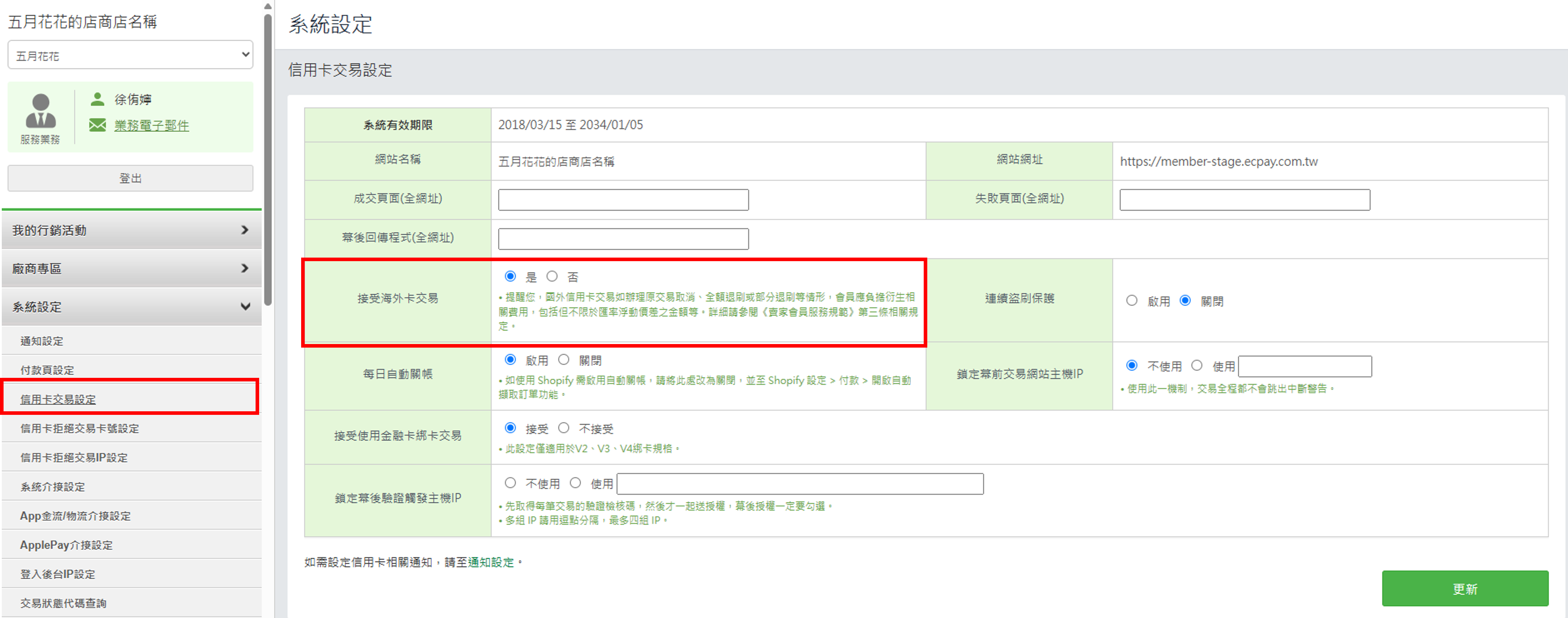 特約賣家可至綠界廠商後台→信用卡交易設定,將「海外(國外)信用卡交易」設定接受,即可開啟海外卡交易。