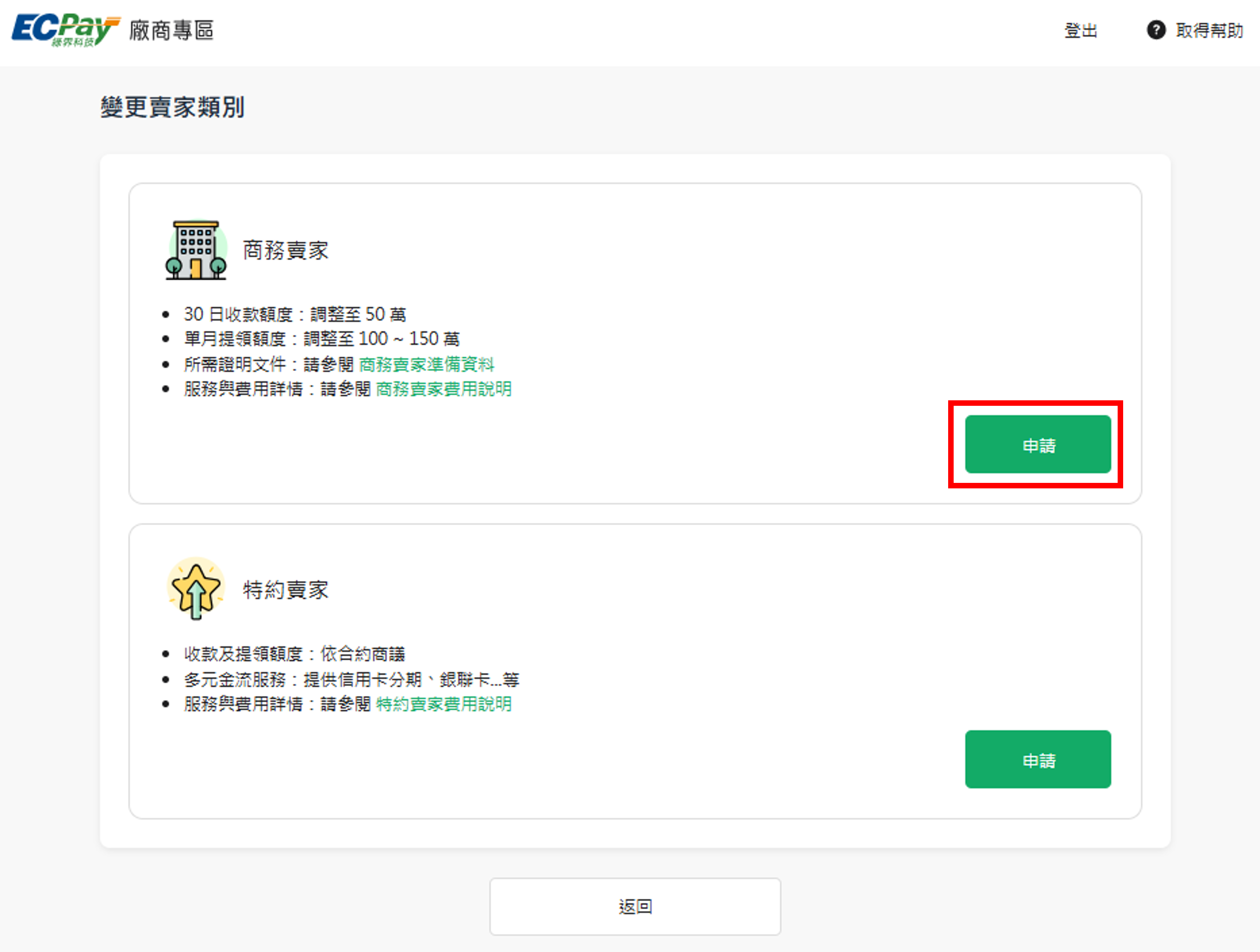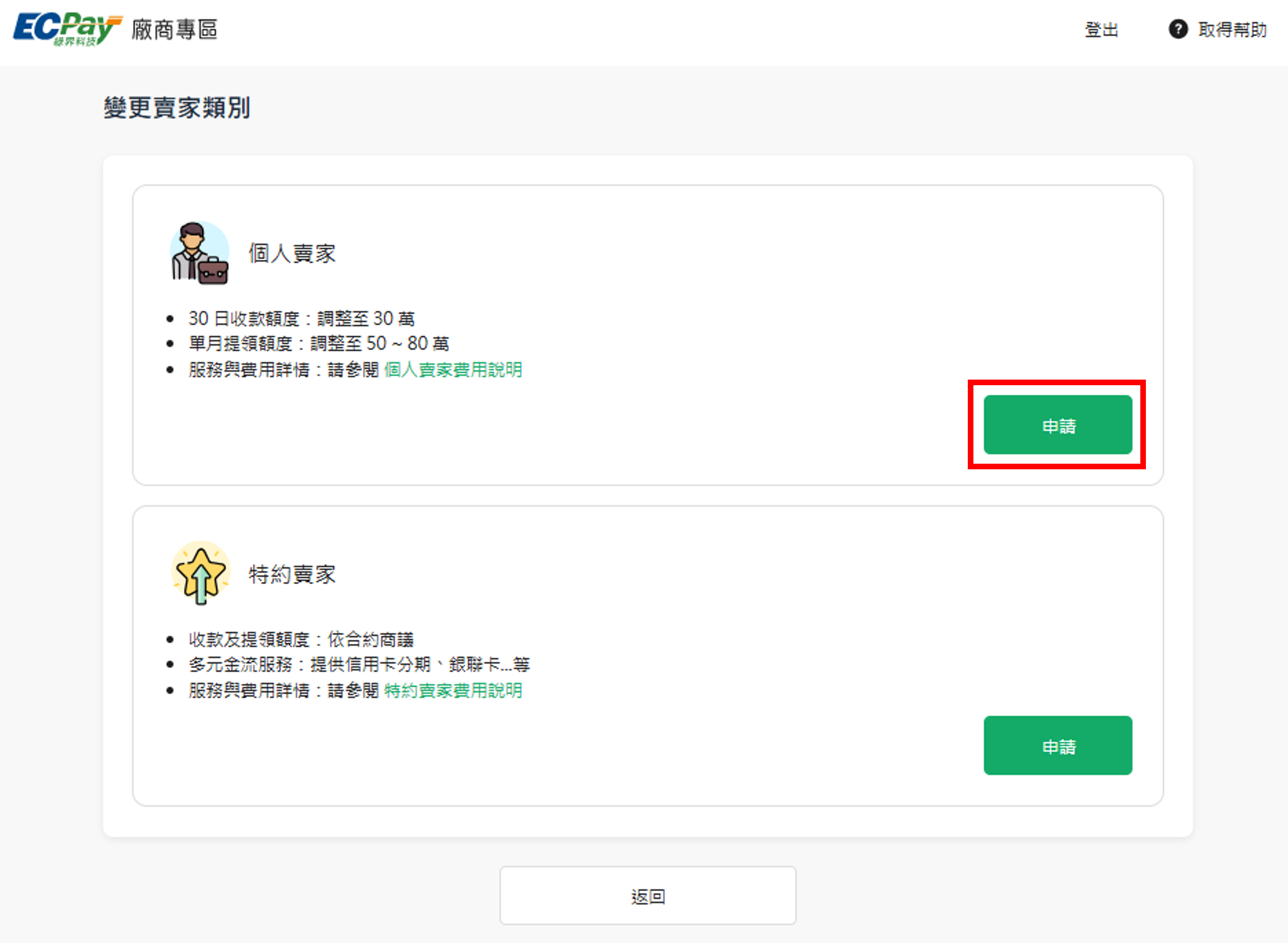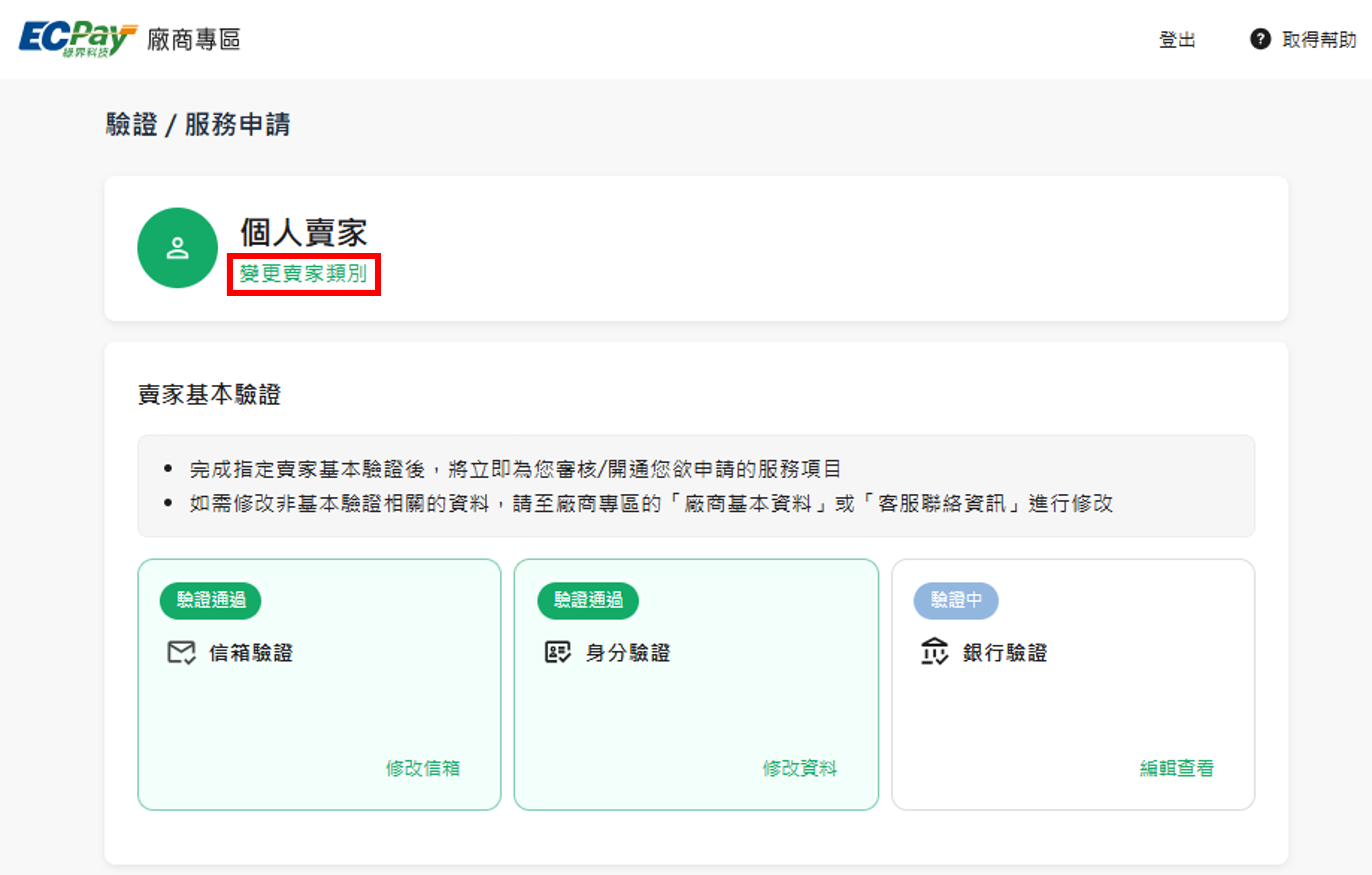 1.於商務賣家下方點選「變更賣家類別」按鈕。
