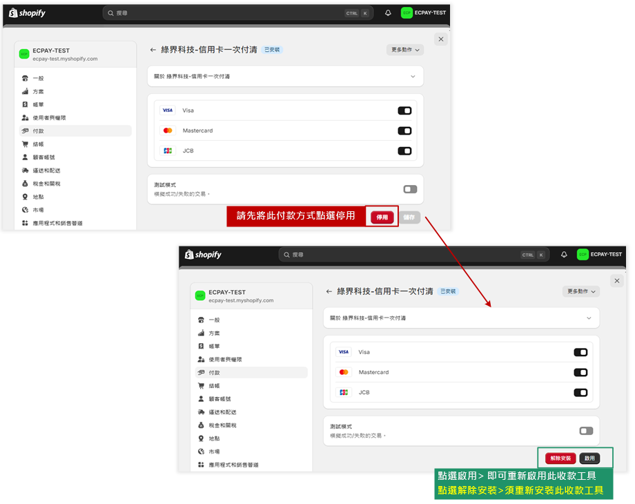 【安裝】在Shopify解除綠界金流
